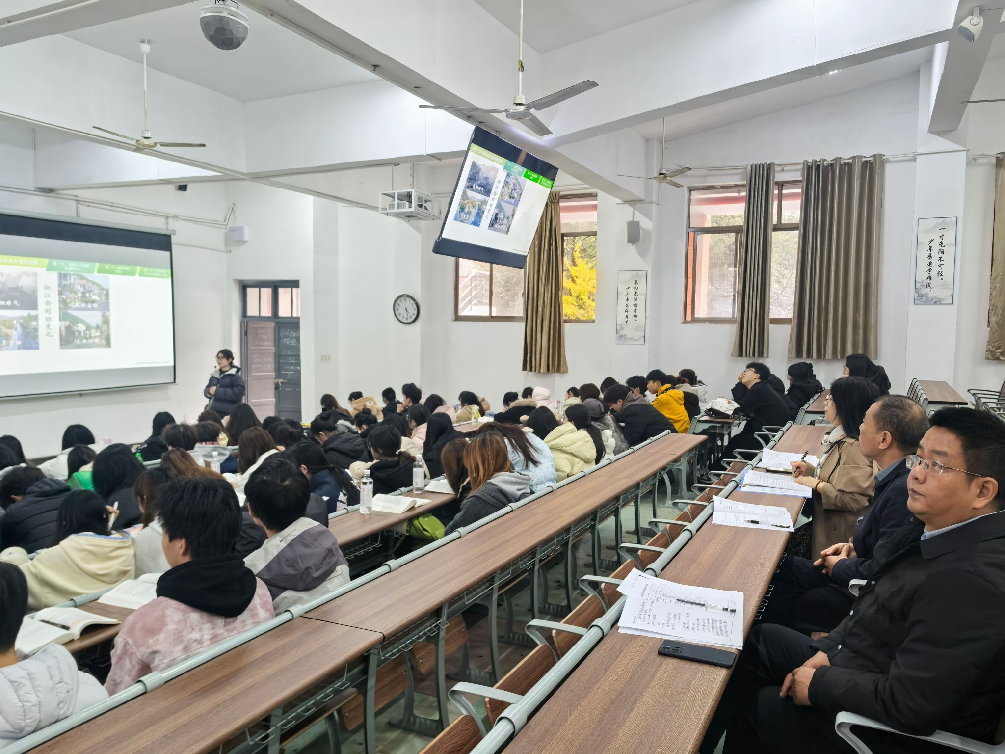 周香兰老师讲授的主题是“建设社会主义生态文明”,徐姝教授及随行领导针对教师课前提供的员工常见问题清单及相关教学材料,认真记录了其教学要点。课后,她对周老师清晰的教学逻辑以及采用案例式、互动式等多元化教学方法给予肯定,并就如何进一步紧密联系社会实际和员工思想关切、增强课堂吸引力和感染力提出了指导性意见。