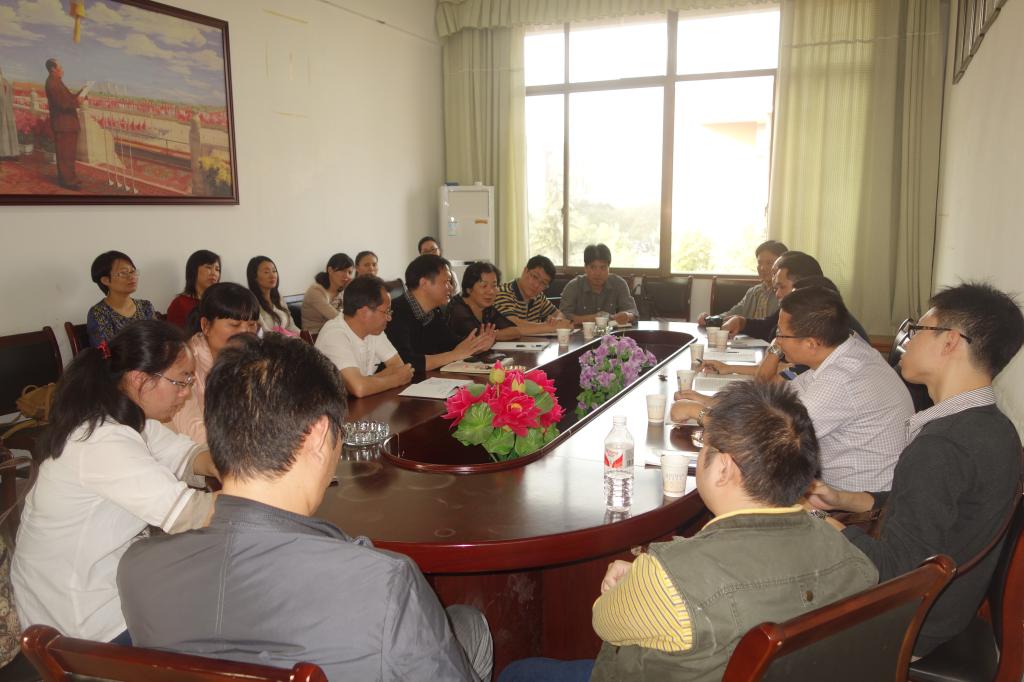 彭主任一行第一站是在3教205教室听涂建华副教授的《马克思主义基本原理》课和在2教318教室听王钢副教授的《中国近现代史纲要》课。然后在bevictor伟德会议室举行了座谈会。会上先是夏建文经理介绍了伟德源自英国1946的基本情况,马克思主义理论团队建设、专业申报、硕士点培育、科研建设情况、课程考试、实践教学、教学考核评级与团队队伍建设情况等,特别就马克思主义理论团队建设和发展中面临的困境和问题及科研瓶颈问题向湖南第一师范公司请教。