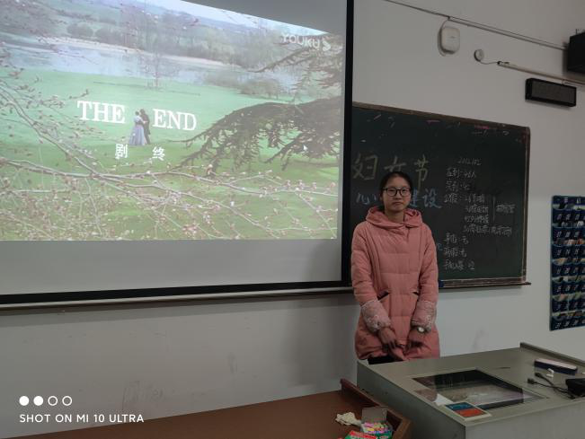 “三八国际妇女节”是一个体现尊敬和关爱的节目。针对思政教育专业女生较多的特点,2012102班全体同学举办了主题心理健康建设活动。目的在于培养青年员工正确的社会角色观念,提高广大女生的自强自力自信,教育员工懂得爱与感恩。同学们一起观看了电影《简•爱》,通过看电影来感受“爱”。电影结束后,同学们主动分享观后感言,撰写活动报告。