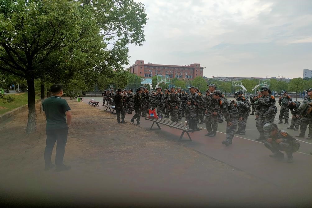 公司新生辅导员王俊、新生班主任刘红星等来到新生军训现场来看望新生们,了解新生军训状况,提醒同学们军训要注意的事项。