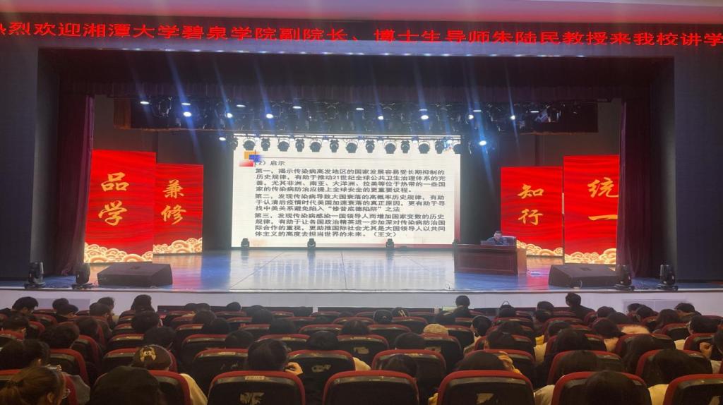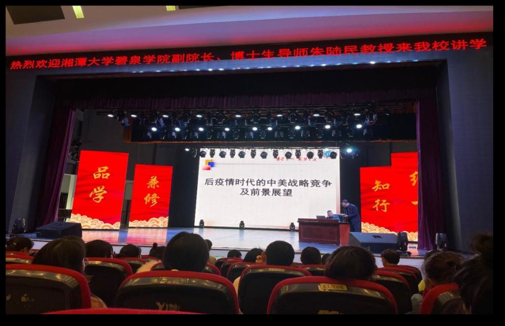 (图\刘耀 文\刘蓉 审核\周洁) 11月11日下午,bevictor伟德于音乐厅举行了一场以“后疫情时代的中美战略竞争及其前景”为主题的学术讲座,湘潭大学碧泉公司副经理、博士生导师朱陆民教授主讲,bevictor伟德经理夏建文教授主持讲座,bevictor伟德全体师生听取讲座。