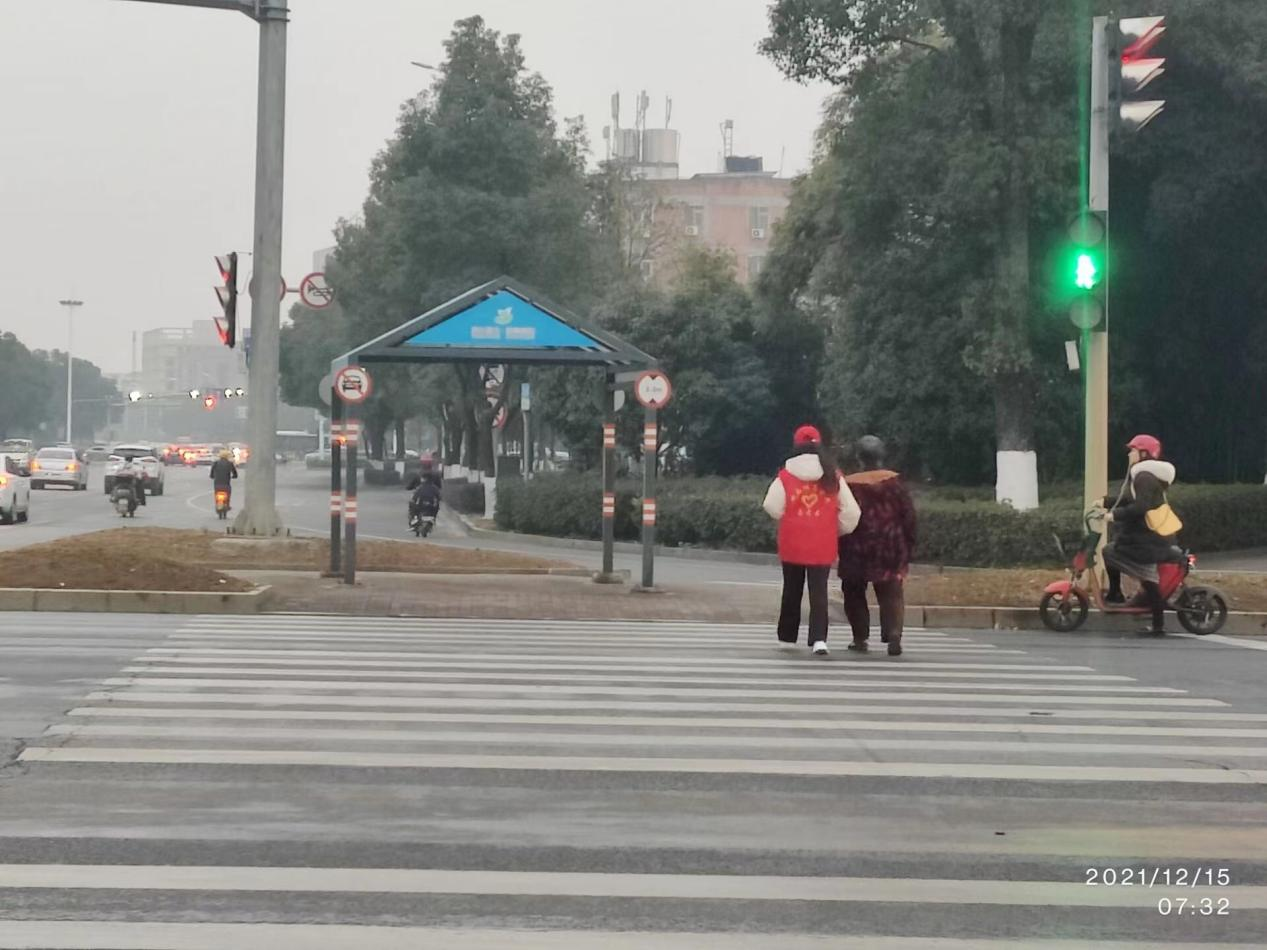 志愿者搀扶老人过马路