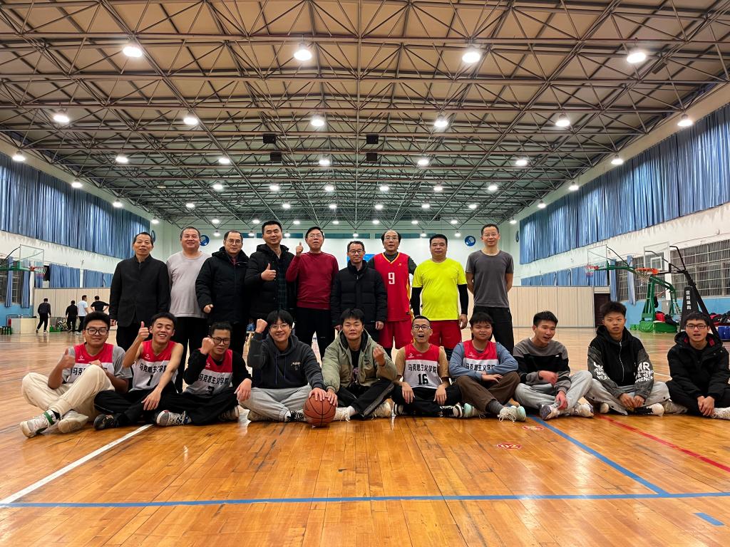 (文/简穗晴) 12月2日下午4点马院在体育馆开展了一场师生友谊篮球赛,该比赛由马公司党总支书记何军新、工会主席汤利光组织,参与的人员有老师冷云飞、匡列辉、陈光明、王钢、朱文星、蒋先寒、邹大虬以及员工代表大一龙舒阳、大二兰晨、大三翟浪等同学。整场比赛高潮不断,跌宕起伏,为我们带来了一场别开生面的友谊之赛。最终老师队取得比赛胜利,公司友谊篮球赛也圆满结束。