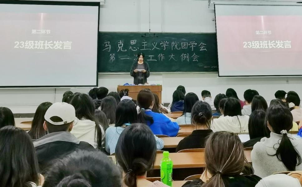 首先,2023级班长发言。她们主要总结了班级自开学以来取得的成绩、存在的问题和困难,并表示在接下来的时间里,将进一步加强与老师、同学们的沟通联系,不断改进工作方式,解决困难,取得进步。