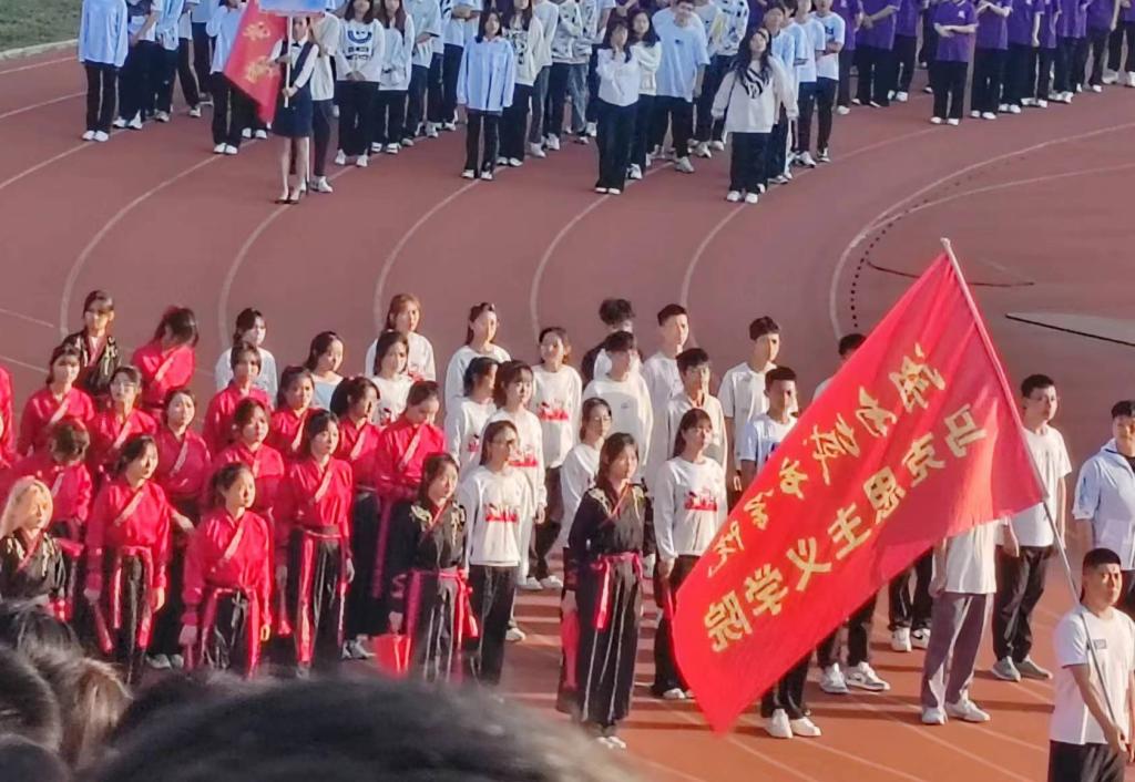 运动会开幕式上,马院员工以《沧海一声笑》为背景音乐展示齐舞,音乐铿锵有力,舞姿刚柔并济,生动展现了马院学子朝气蓬勃、奋发向上的精神风貌与青春活力。运动场上,马院师生齐心协力,挥洒汗水,奋勇争先,赛出风采。