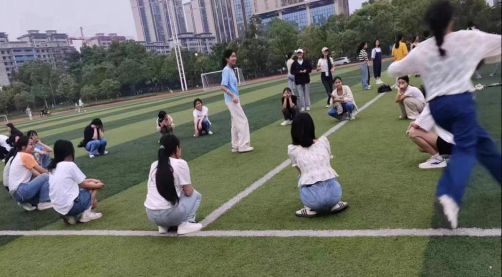 活动伊始,工作人员组织同学们开展了“123木头人”、“丢手绢”等拉伸游戏,充满童趣的小游戏充分调动了参与者的热情和积极性,同时也保证了活动有效、高质量地进行。