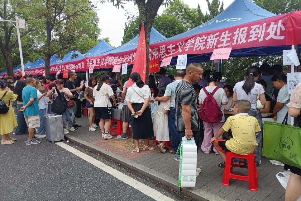 集团领导高度重视迎新工作,董事长何振、员工工作部部长余洪莅临马克思主义公司迎新服务台,了解新生入学报到情况,并勉励新生尽快适应老员工活。