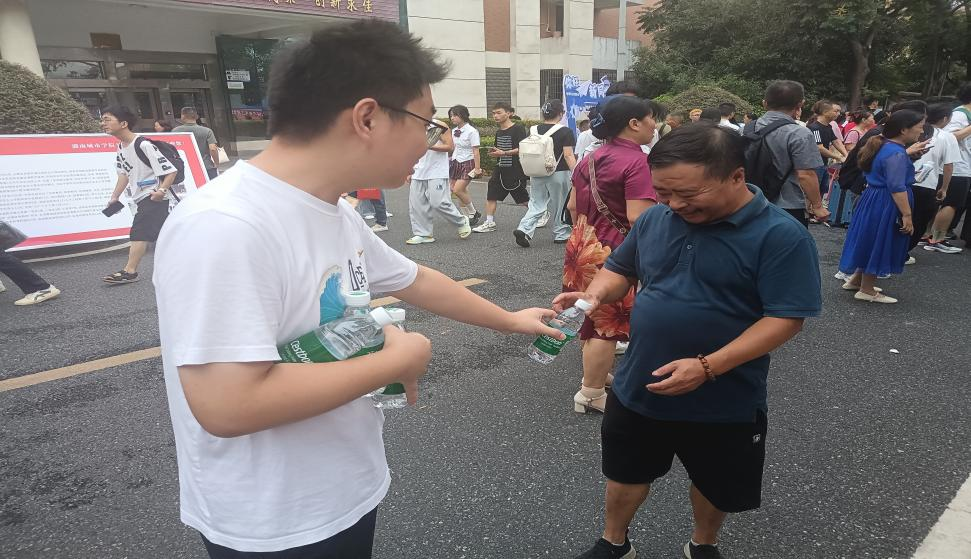 员工志愿者给家长送水